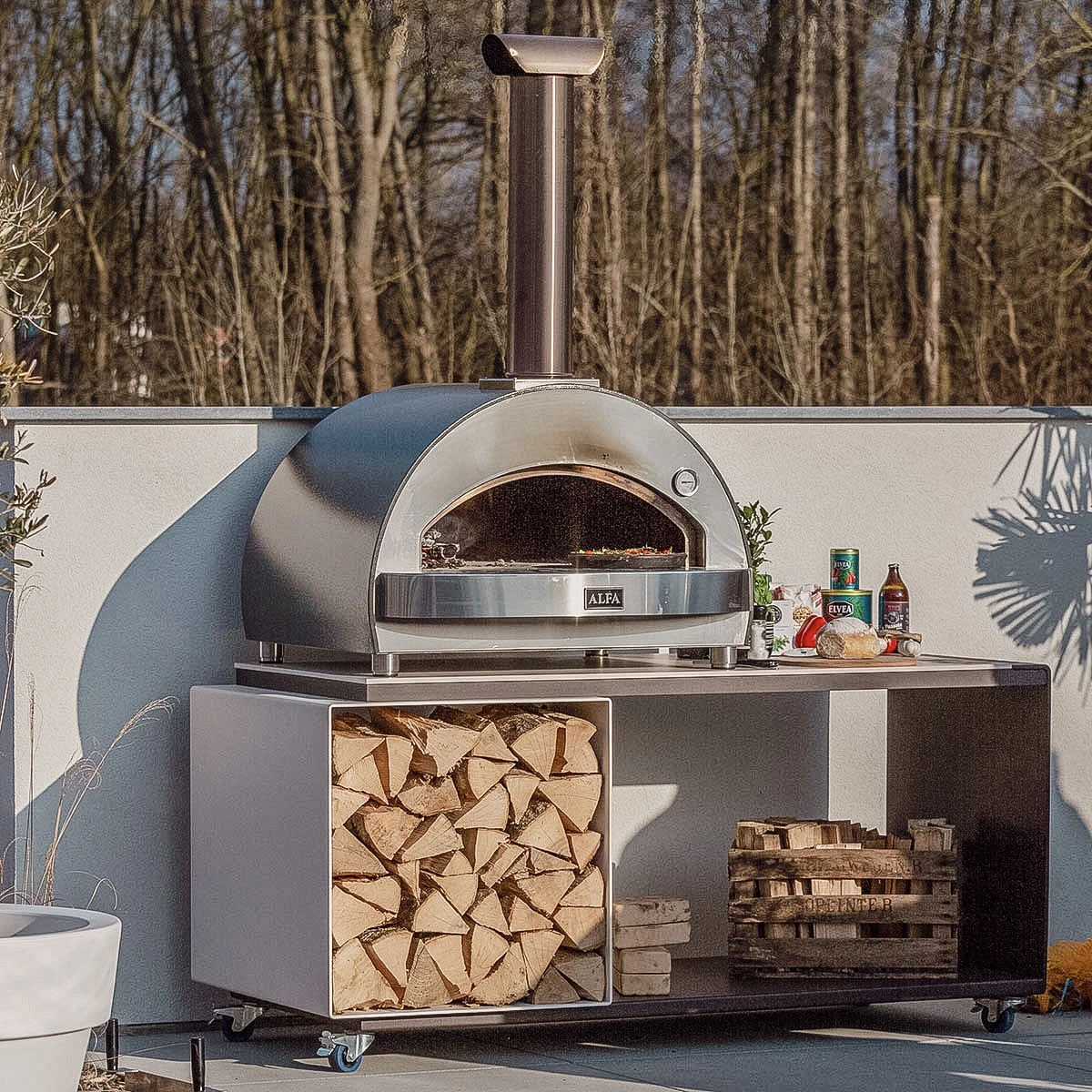 Alfa Forni Pizzaofen Classico 4 Pizze Ohne Stand, Holz, Kupfer