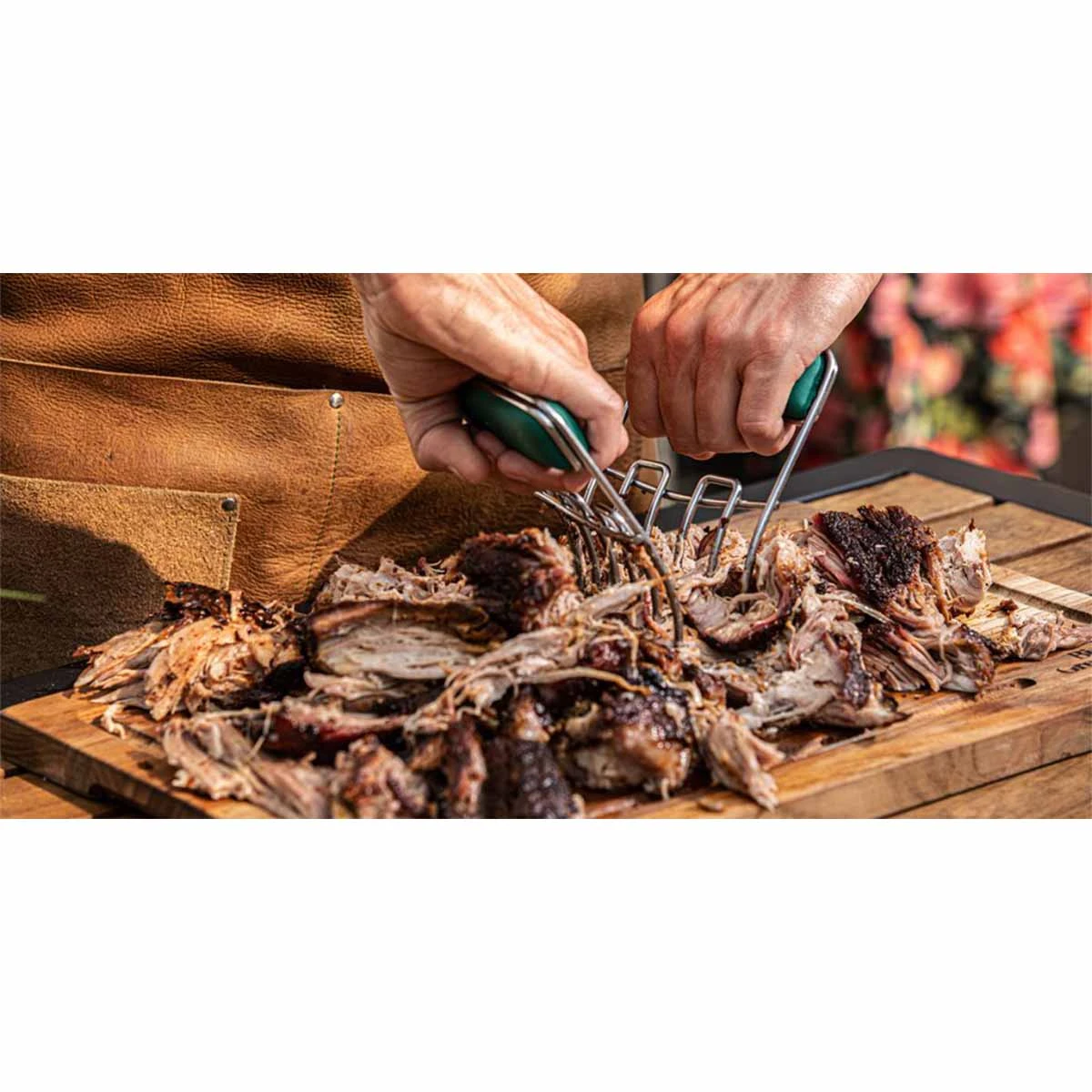 Mit diesen praktischen Fleischkrallen wird das Auseinanderziehen des gegarten Schweinefleisches ein Kinderspiel. Seit vielen Jahren ist Pulled Pork unter den Big Green Egg-Gerichten sehr beliebt und diese Fleischkrallen sind hierfür unerlässlich. Aber die Krallen eignen sich nicht nur perfekt für das Zerteilen von großen Stücken Fleisch, sie erleichtern auch das Wenden und Transportieren von großen Fleischstücken.