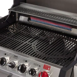 Die große Grillfläche von 65 x 44 cm ist mit 4 Flav-R-Cast matt-emaillierten Gussrosten ausgestattet und über ihr ist ein emaillierter Ablagerost montiert, mit dem Ihr super indirekt garen oder Speisen warm halten könnt. Typisch für Broil King sind auch das Flav-R-Wave Verdampfungssystem aus Edelstahl sowie die Linear Flow Gasdüsen mit 180° Sensi Touch Steuerung und Sure Lite Elektrozündung. Ebenso sind sämtliche Griffe, das Bedienteil und die Seitenablagen aus Edelstahl gefertigt.