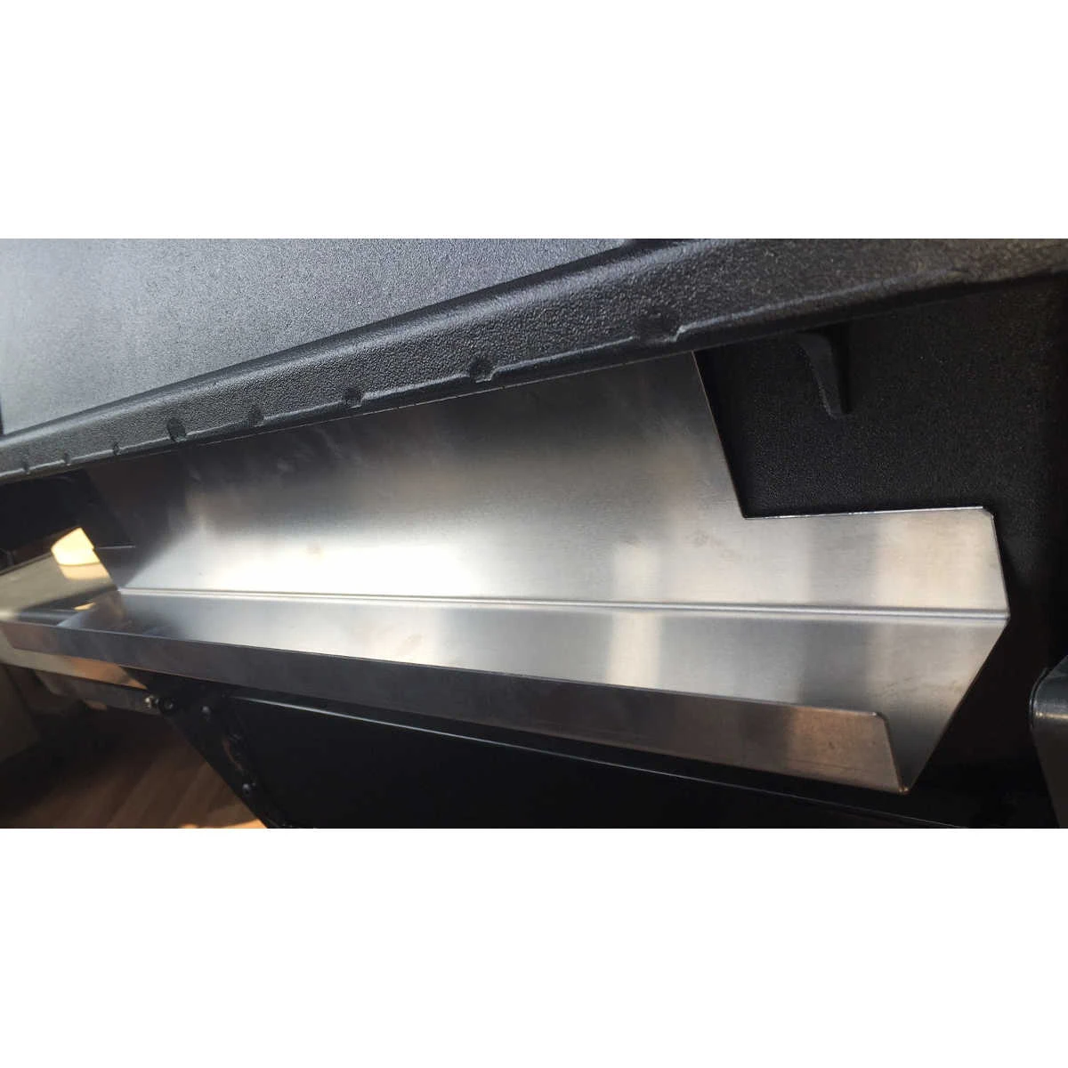 Herabtropfende Flüssigkeiten aus dem Grilldeckel haben nun keine Chance mehr. Sie werden direkt in der Fettschiene aufgefangen und können nicht mehr auf Euren Boden tropfen.