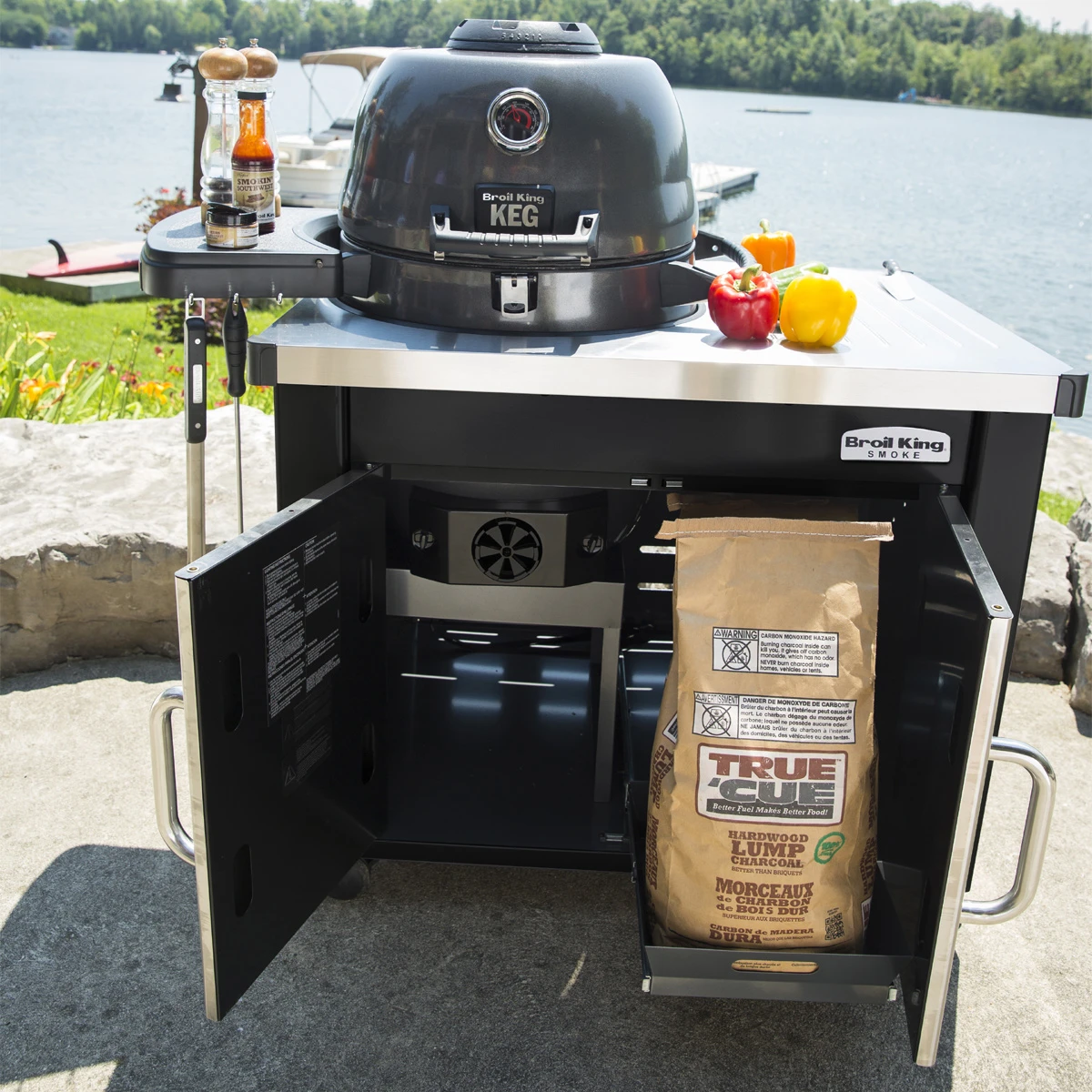 Verwandelt Euren Broil King KEG in eine komplette Outdoorküche. Hergestellt aus haltbarem Edelstahl mit einer stilvollen Arbeitsplatte, die Euch den Raum gibt, den Ihr benötigt, um das Essen direkt am Grill vorzubereiten. Der Unterwagen mit stabilen Türen und Griffen aus Edelstahl bietet Euch ausreichend Stauraum für die Notwendigkeiten am Grill. Die Auszugswanne ist perfekt für die Lagerung von Säcken mit Holzkohle oder Holzchips und Chunks.