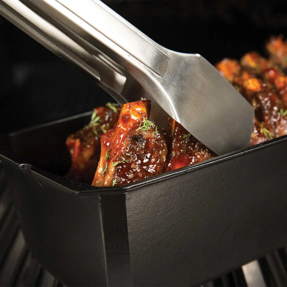 Der massive gusseiserne Rib Roaster verfügt über ein beiliegendes Rib-Rack, welches den Kontakt der Ribs mit dem Boden vermeidet. Ideal um auf dem Grillrost oder den Flav-R-Wave positioniert zu werden.
