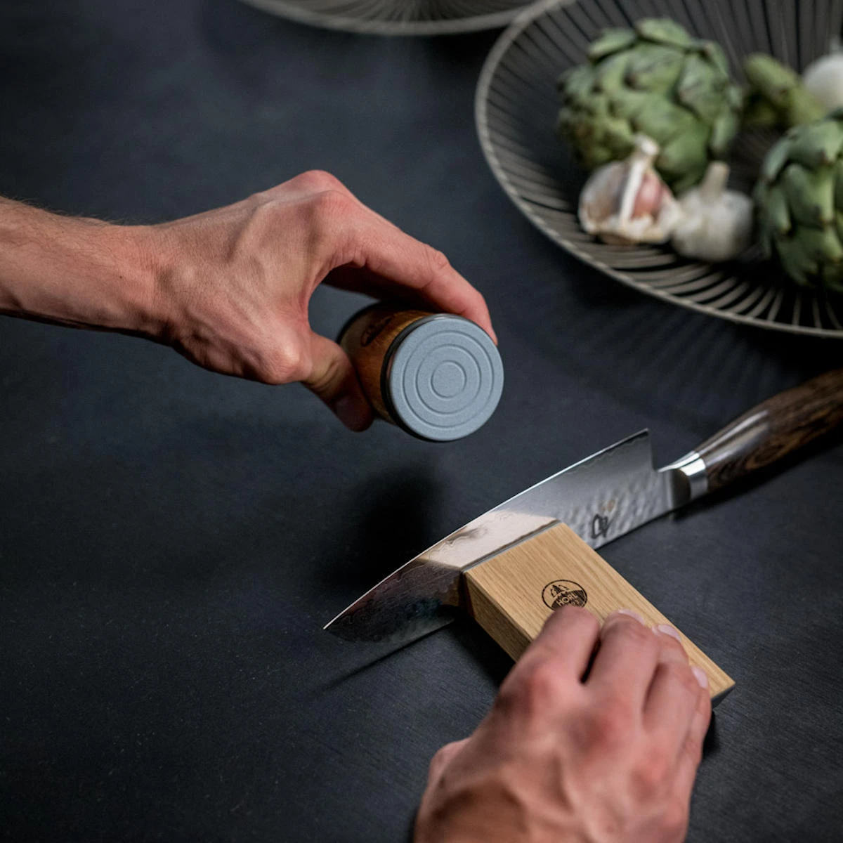 „Wir wollen jedem ermöglichen, seine Messer so zu schärfen, dass Schneiden richtig Freude macht“ – so die Motivation des Vater & Sohn Teams aus dem Schwarzwald. Timo und Otmar Horl haben das Messerschleifen revolutioniert: Die einzigartige Rollbewegung des HORL Rollschleifers im perfekten Zusammenspiel mit der HORL Magnet-Schleiflehre sorgt für eine besonders effiziente und schonende Schärfung Eurer Küchenmesser.
