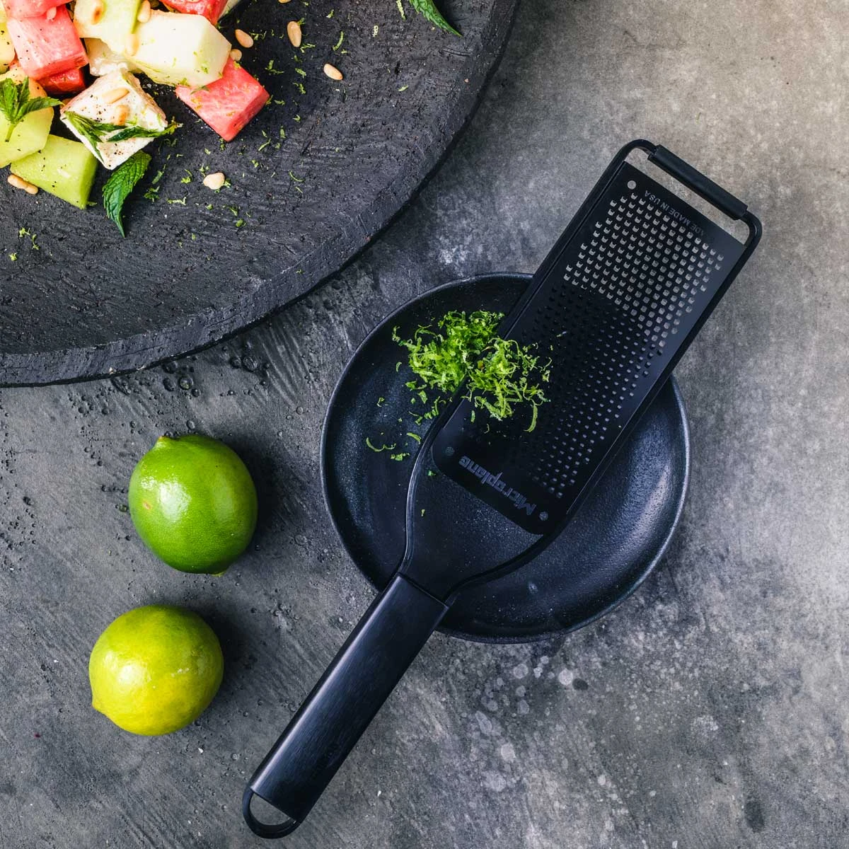Wer neben höchster Funktionalität auch Wert auf legt, wird an der Microplane Black Sheep Serie seine wahre Freude haben. Vom Griff über den Rahmen bis zur Klinge in schwarze Optik gehüllt, bestechen die Black Sheep Reiben mit ihrem Aussehen. Eine funktionelle sorgt für zusätzliche Kratzfestigkeit.