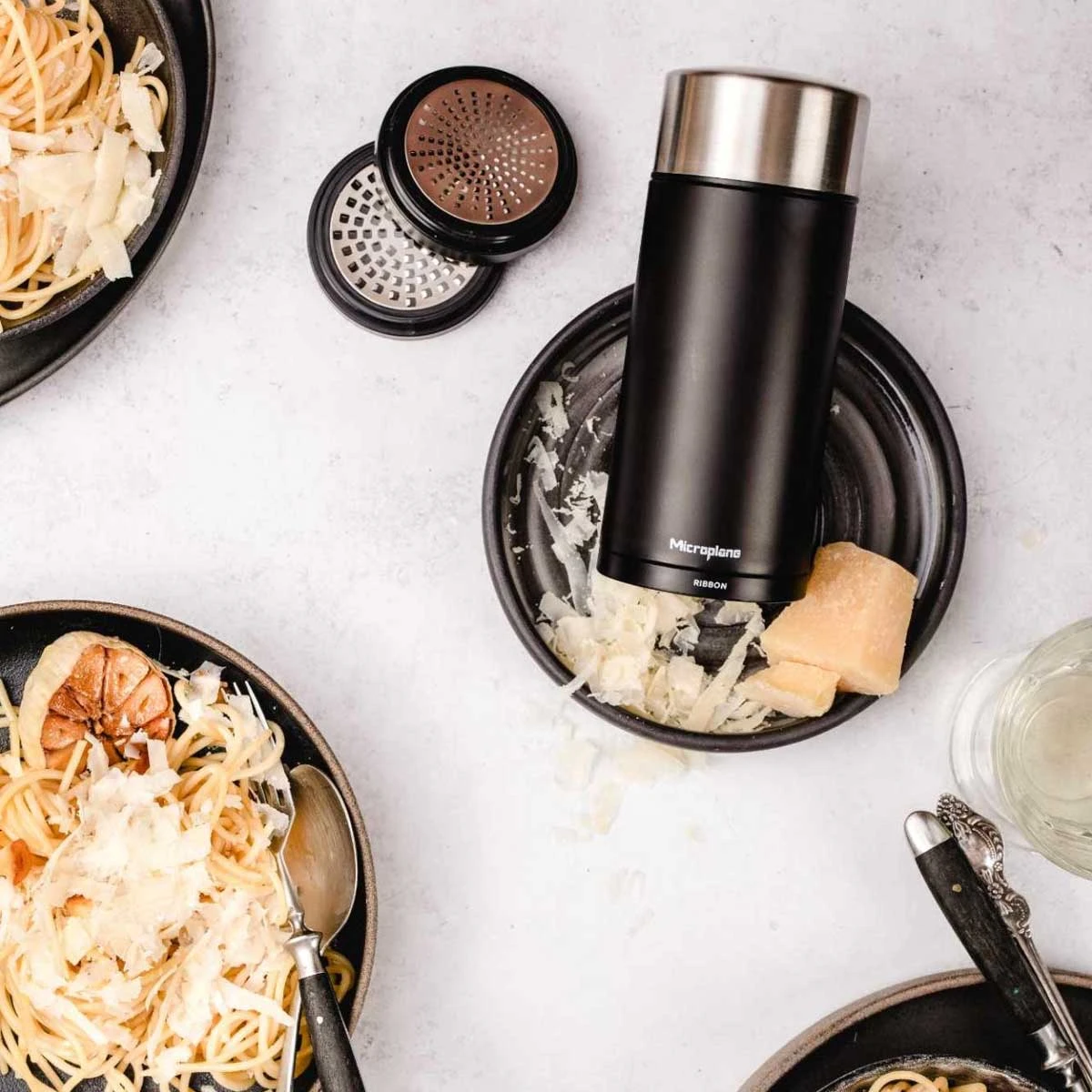 Mit den drei auswechselbaren mahlt, reibt und raspelt die Microplane Universal Mühle Eure Zutaten und Gewürze je nach Bedarf. Grobes Salz, Pfefferkörner und Muskatnuss können zum Nachwürzen bei Tisch fein gemahlen werden, während grobe Parmesanstreifen Eure Pasta als Topping veredeln. Sie ist durch drei Reibescheiben in fein, mittel und grob besonders vielseitig einsetzbar – und eignet sich auch hervorragend für Schokolade, Knoblauch, Nüsse, Samen, Kerne, Kokosnuss und Gewürze wie Zimtstangen, Sternanis und Tonkabohnen.