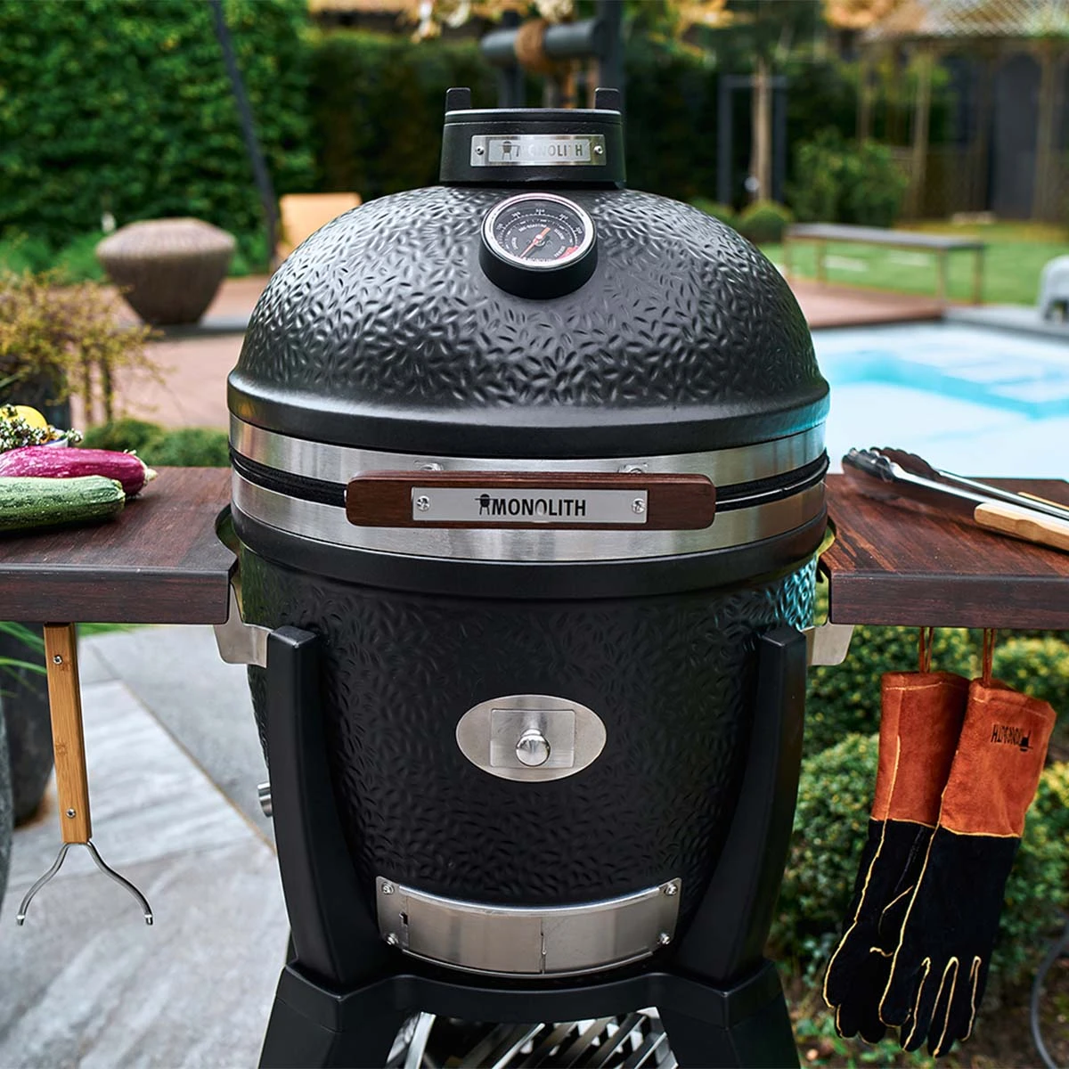 Der Monolith AVANTGARDE Keramikgrill CLASSIC wird in dieser Version mit einem robusten Gestell und praktischen Seitentischen geliefert. Das ermöglicht eine bequeme Handhabung und sorgt für zusätzlichen Platz für Grillzubehör.