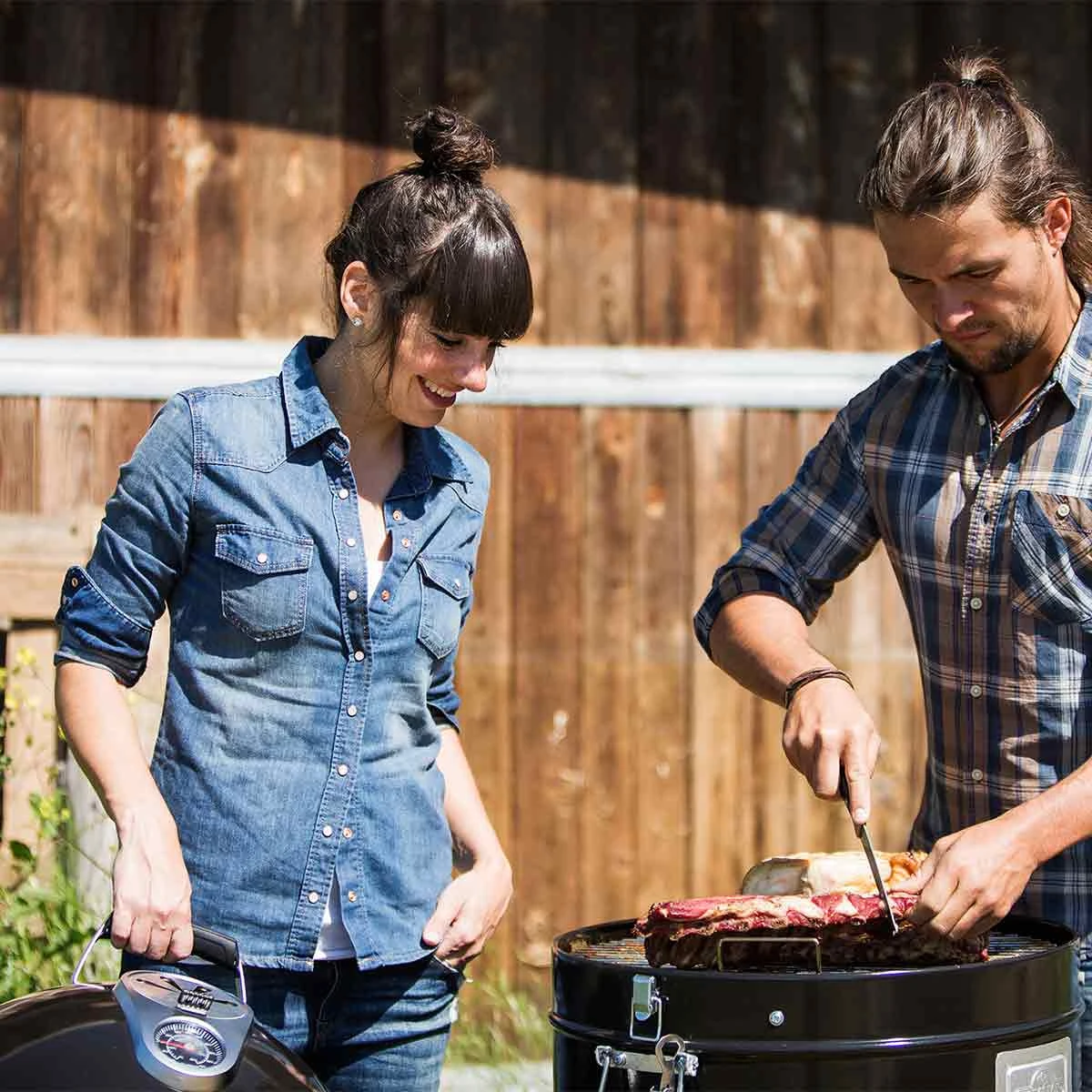 Während Temperaturösen auf jeder Grillebene das Einführen von Temperatursensoren zur Kontrolle ermöglichen sorgen mehrere Lüftungsschlitze für eine hervorragende Temperaturkontrolle. Ein exaktes Deckel-Thermometer verrät ebenfalls die Temperatur- das öffnen des Deckel wird dabei überflüssig. Dicht schließende Türen mit Scharnier erleichtern den Zugang zur Wasserpfanne und zum Holzkohlekorb.