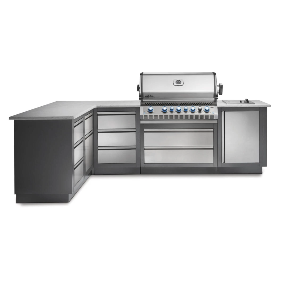Konfiguriert Euch Eure perfekte Außenküche mit der Outdoor-Küchen-Serie Oasis von Napoleon. Dank der einzelnen Elemente könnt Ihr Eure Außenküche praktisch in jeder Kombination zusammenstellen und passt sich so Euren individuellen Bedürfnissen perfekt an. Sie bietet Euch viel Stauraum und langlebige, wetterbeständige Oberflächen.