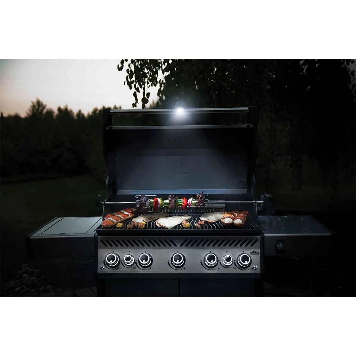 Mit dem einstellbaren Grifflicht von Napoleon beleuchtet Ihr Grillbereiche von 45–90 cm Länge. Die vier elektrischen LED-Leuchten haben eine Gesamtleuchtzeit von bis zu 60 Stunden und verfügen über zwei unterschiedliche Leuchtstufen. Lasst Euch mit der wetterbeständigen Grillbeleuchtung bei der Zubereitung eines köstlichen Gerichts nicht vom Wetter abbringen.