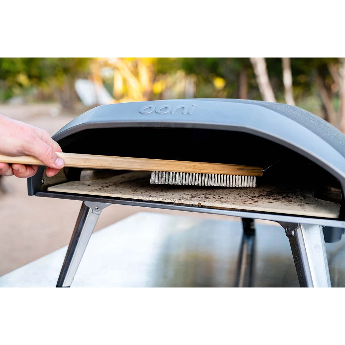 Dank des bequemen und liegt die Ofenbürste von Ooni super in der Hand. Mit dem könnt Ihr zuerst entfernen, anschließend reinigt Ihr mit der mit Borsten aus Edelstahl. Die Bürste ist das ideale Grillzubehör zur Eures Pizzaofens nach dem Grillen.