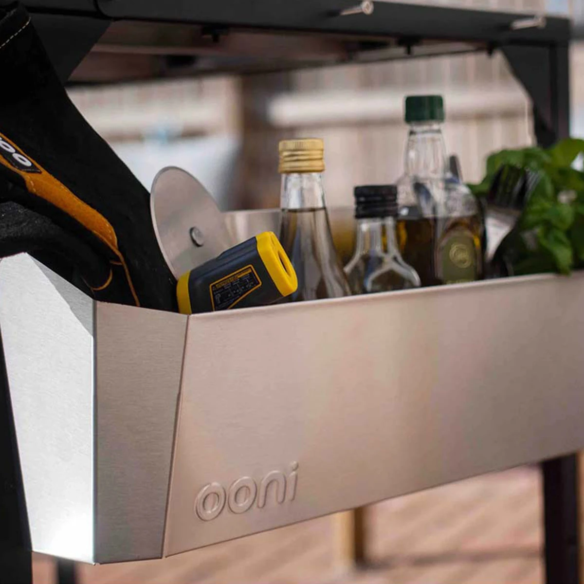 Das Steak muss gewendet werden, die Beilagen sind fertig und du weißt nicht, wo du dein Bier abstellen sollst, während du deine Handschuhe anziehst? Das Ooni Utensilienfach ist dein praktischer Helfer, um sämtliche Artikel aufzubewahren, damit du die Hände frei hast.