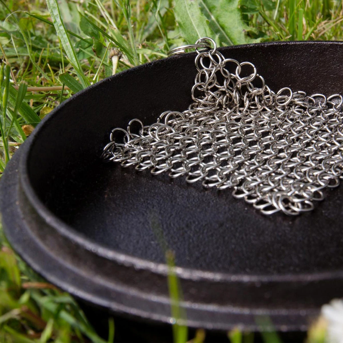 Dieses hochwertige und strapazierfähige Utensil aus Edelstahl reinigt mühelos Gusseisen, Schmiedeeisen und Edelstahl ohne die wertvolle Patina zu beschädigen. Das Kochgeschirr einfach abkühlen lassen und mit warmem Wasser schonend die angebrannten Essensreste abreiben. Ein Spülmittel wird nicht benötigt. Nach dem Säubern nochmals abspülen und vor dem Verstauen gut abtrocknen, sonst ist Kontaktkorrosion möglich.