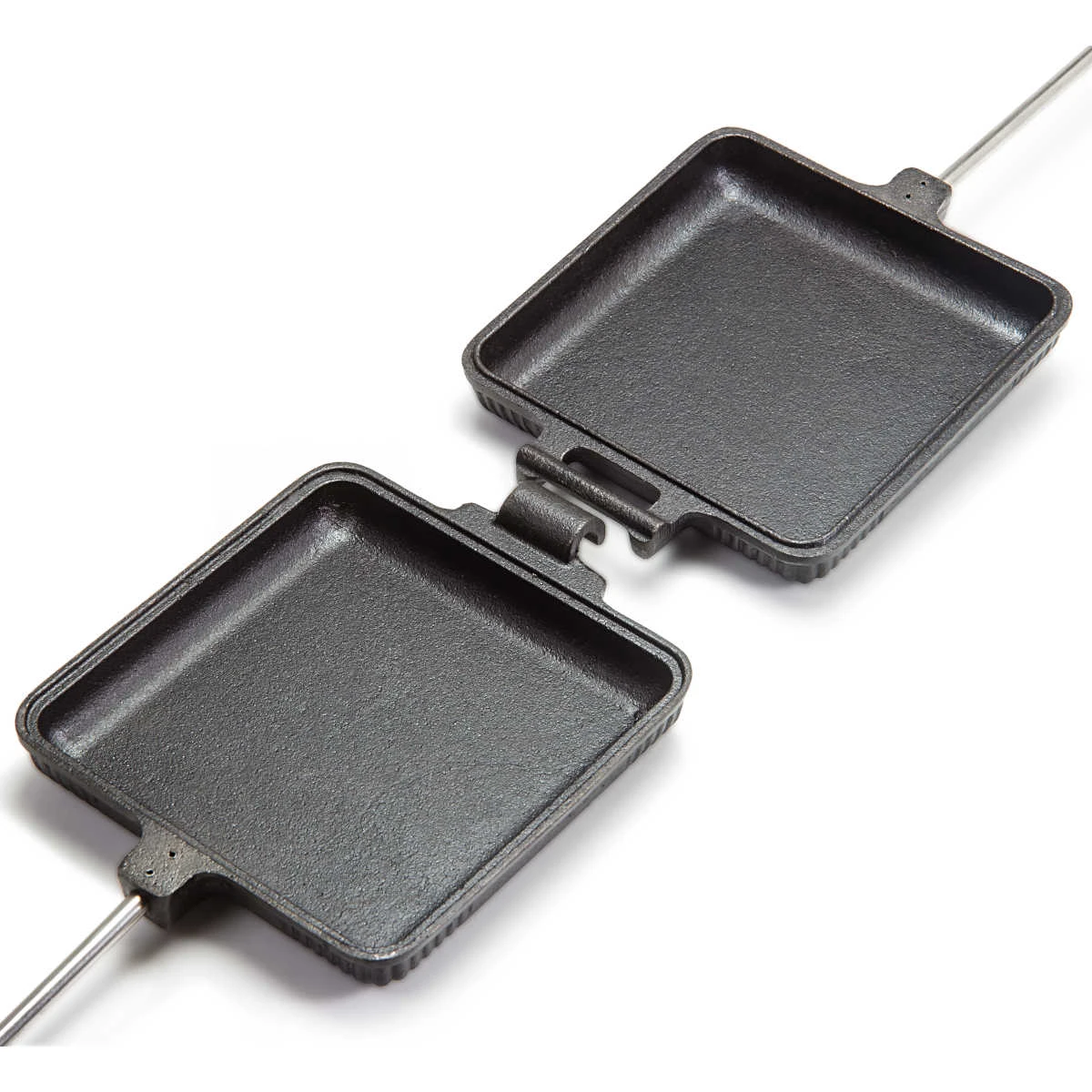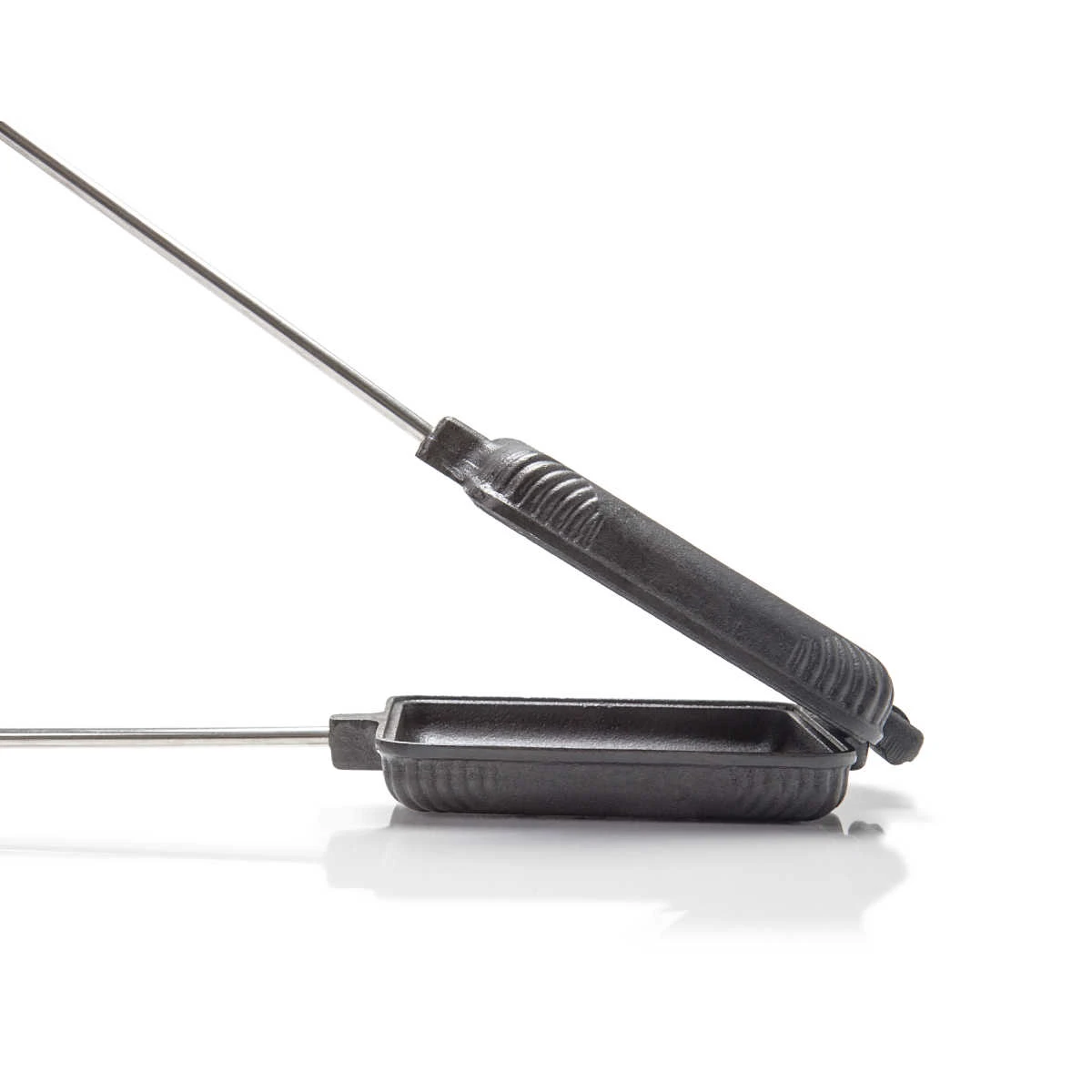Mit dem gusseisernen Sandwicheisen von Petromax bereitet Ihr äußerst knusprig geröstete Toasts, Bagels oder Teigtaschen zu. Egal ob auf dem Grill oder am Lagerfeuer: Freut Euch auf ein saftiges Toastbrot. Dabei sorgt der praktische Verschlusshaken dafür, dass die Toastpfannen zusammen halten und nichts herausfällt. Die besonderen Eigenschaften von Gusseisen sorgen für gleichmäßige, krosse und saftige Grillergebnisse.