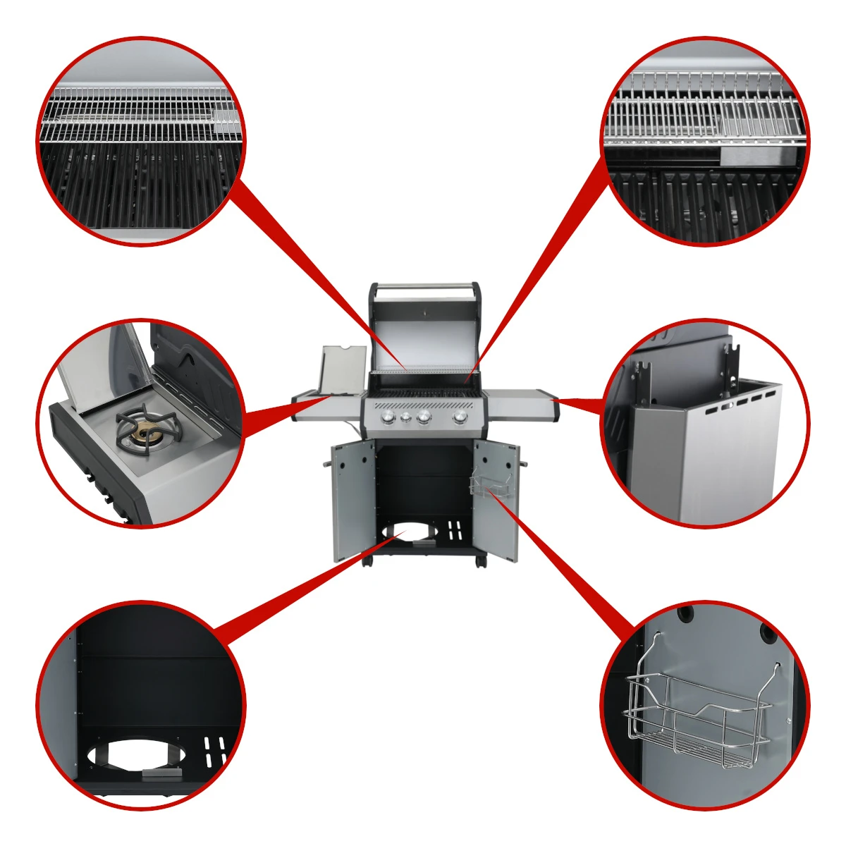 Kompetente Beratung und das richtige Gespür, was unsere Kunden wünschen, hat SANTOS zu einem der größten Grillfachhändler gemacht. Für unsere neuen Grillmodelle haben wir auf diese Erfahrungen zurückgegriffen. Der SANTOS S-301 Gasgrill in der Edelstahl Variante vereint alles, was das Herz von Grillfans höher schlagen lässt. Mit dem S-301 seid Ihr bestens für die nächsten Jahre ausgestattet. Neben der Hauptgrillfläche hat der S-301 einen Seitenkocher, der aus dem Gasgrill eine kompakte Outdoorküche macht.